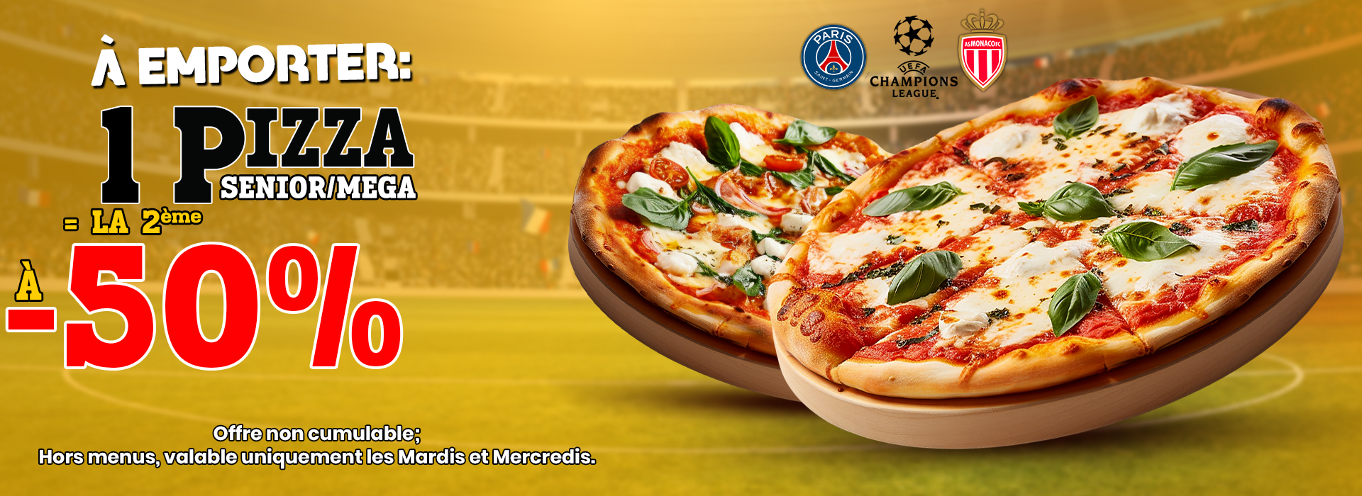 1 PIZZA SENIOR OU MÉGA ACHETÉE
